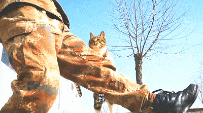尤先生介绍,自己是一名退伍老兵“以前曾在部队训练军犬现在是自由职业平时会帮剧组做宠物演员指导”尤先生说,“钢蹦”以前是一只流浪猫