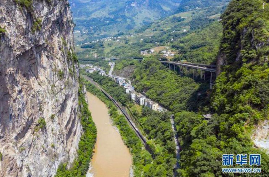 在云南省昭通市盐津县豆沙关,五尺道、关河水道、内昆铁路、G247高速及G85渝昆高速5条不同时期的交通线路以几乎并行的姿态呈现眼前(8月10日摄,无人机照片)新华社记者 江文耀 摄*改善微循环,着力实施农村公路建设。