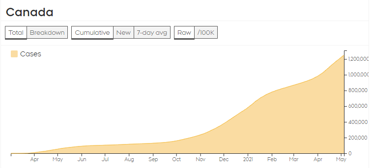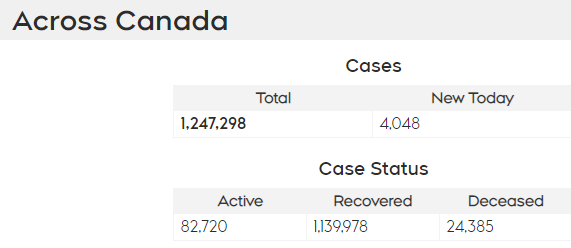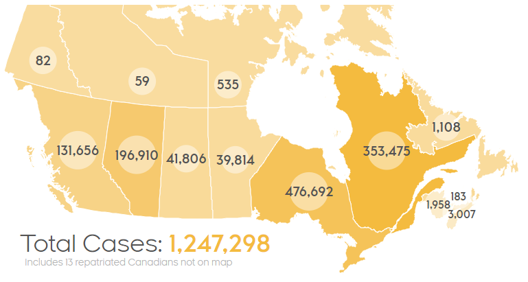 截止发稿前止,加拿大累计确诊人数达1,247,298人!24383人死亡!