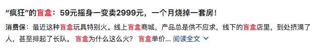 如果你在媒体上搜索“盲盒”两个字,后面大多都会跟上“智商税”、“疯狂”,又或者是“炒作”。