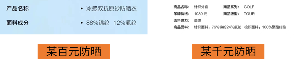 02怎样找到高性价比防晒目前,市面上的防晒衣鱼龙混杂,从几十块钱到上千元不等是不是价格越高,防晒效果就越好呢?NO.高价防晒衣和平价防晒衣之间的科技、用料,区别并不大面料方面,目前效果比较好的是锦纶,价格大概是30—40元/米。