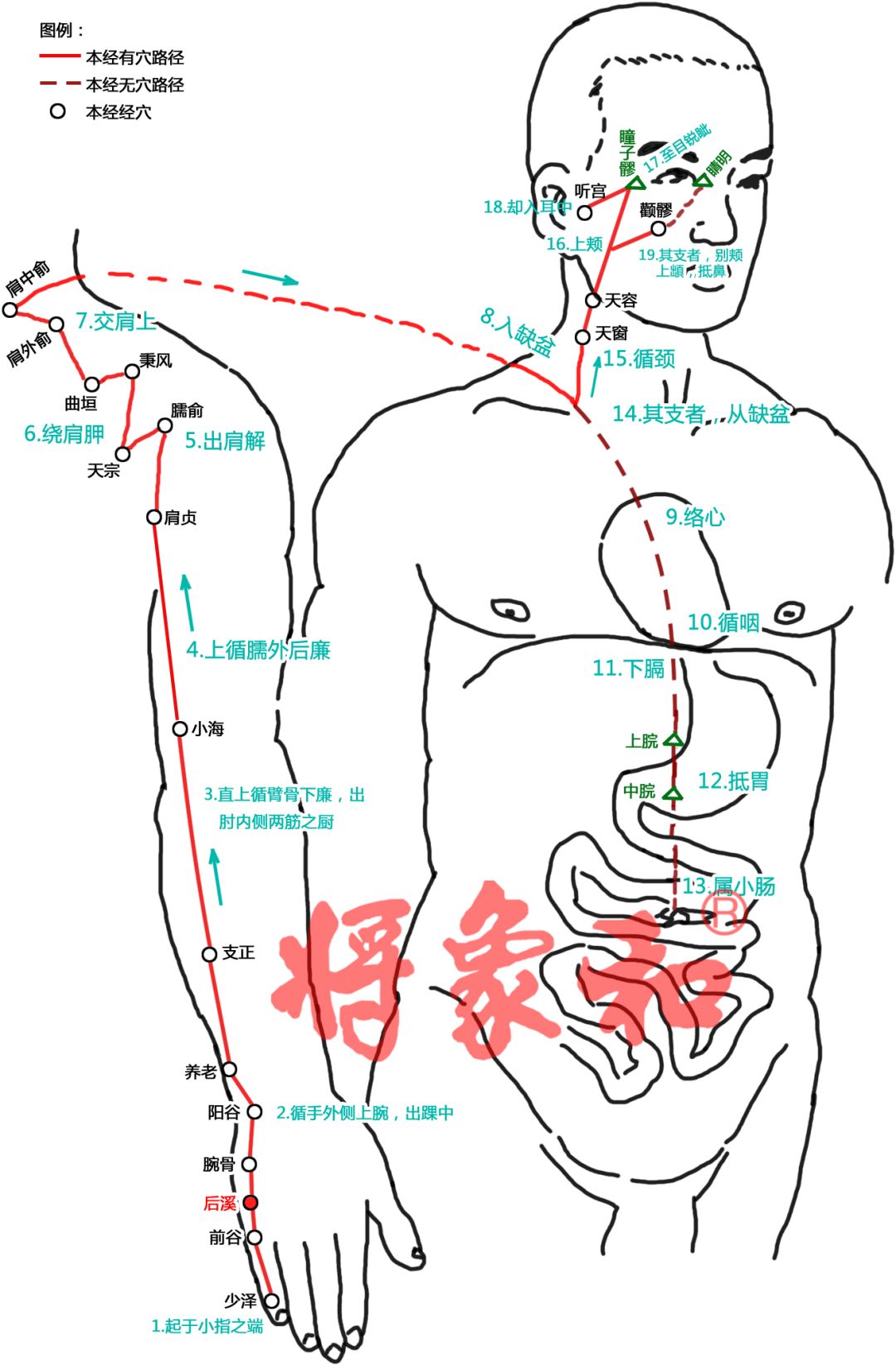 点击上图,然后用手指放大,查看小肠经清晰大图!