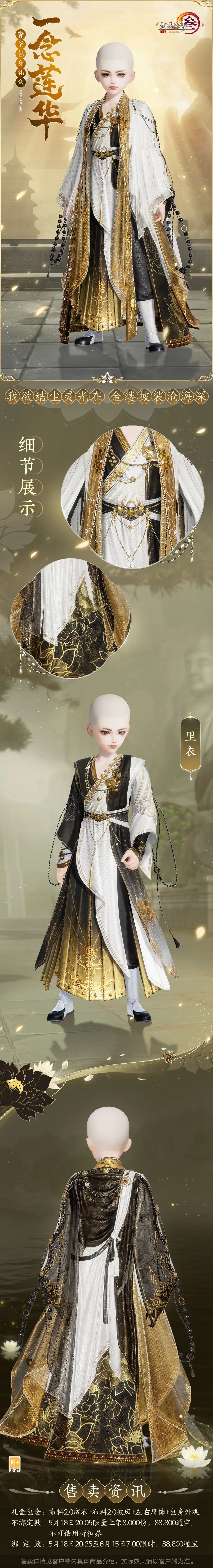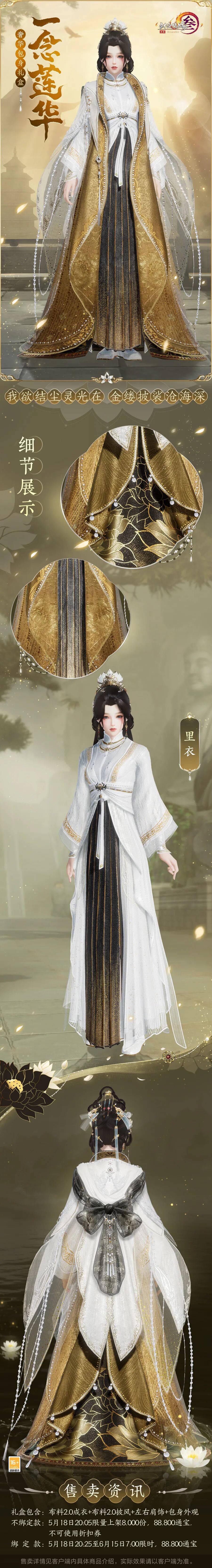 -明心见禅,识悟般若-全新奢华包身礼盒“一念莲华”悠悠而至-以禅道为灵感元素,融合黑白与沉金三色,勾勒一派肃穆清雅金纱披风与大气里袍两相呼应,更以珠串作为点睛之笔,构成似云烟绕松石的包身效果,超脱不凡!。